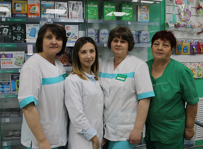 У Татьяны Александровны Фоменко и Юлии Владимировны Петренко на сегодняшний день фармацевтическое образование, у Светланы Сергеевны Глотовой – медицинское. Они без проблем влились в наш коллектив. В работе нам помогают учебный портал, тренеры, Онлайн-обучение и тестирование. А вот за порядок в аптеке отвечает наша чистюля Галина Николаевна Корж.