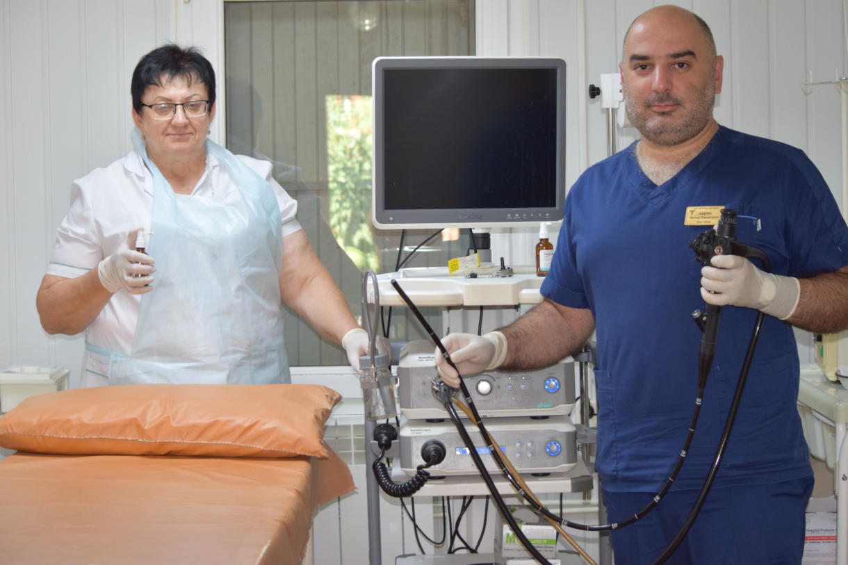 Эндоскопист Артур Азарян и медицинская сестра Людмила Михайлова трудятся в кабинете эндоскопии Тбилисской центральной районной больницы.
