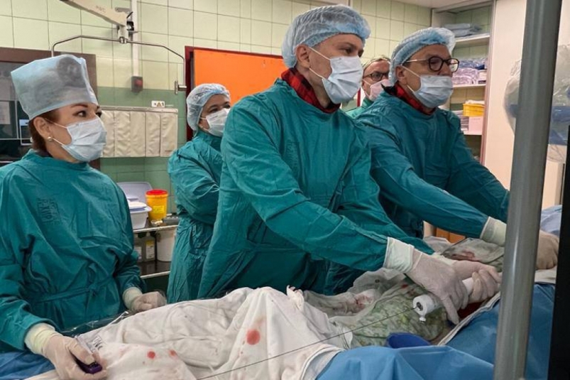 Операция выполнялась без наркоза через прокол бедренной артерии в паховой области под местной анестезией. Сейчас мужчина чувствует себя хорошо, его жизни и здоровью ничего не угрожает.