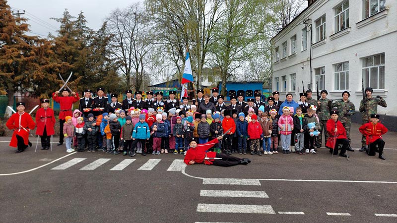 Казачата рассказали малышам, кто такой здоровый человек и что нужно делать, чтобы быть здоровым. Затем прошли показательные выступления по развертыванию флага, строевому дефиле с карабинами, фланкировки казачьей шашкой и армейскому рукопашному бою.