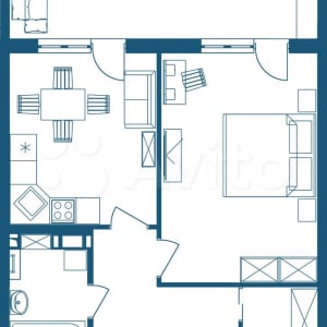 1-к. апартаменты, 59.1 м², 1/7 эт.