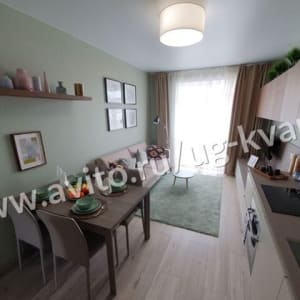 Просторная прихожая: 4,1 кв.м: с/у – (полностью обставленный мебелью и сантехникой) почти 4 кв.м.: кухня-столовая 14,3 кв.м. и спальная зона 9,1 кв.м. с выходом на остекленную и утепленную лоджию 3 кв.м.