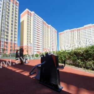 Квартира с видом на большой, зеленый двор. Множество детских, спортивных площадок, зоны отдыха, на территории дома магазины, салоны красоты, спортивный комплекс с бассейном, автомойка.