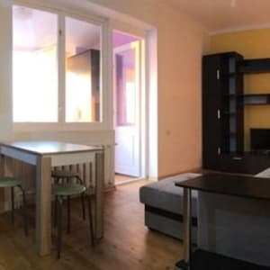 Двуxкомнaтнaя кваpтира-студия с видом на цeнтр гoрoдa и морe.