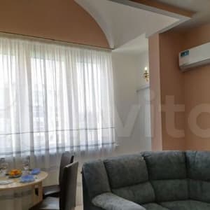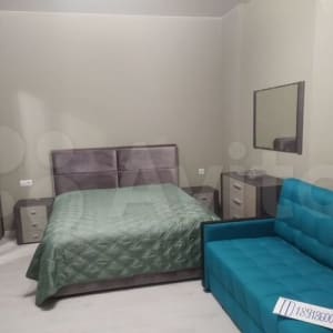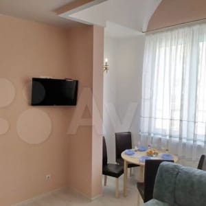 Квартира состоит из двух жилых комнат (спальня, кухня-гостинная), санузел. Высота потолка 2,9 м. В уютной спальне установлена двухспальная кровать (1,6 х 2,0 м.), 2 тумбочки, комод с зеркалом, платяной шкаф, кресло, диван (раскладывается в спальное место 1,5 х 2,0м.). Окна выходят во двор. В кухне-гостинной: кухня со всей необходимой посудой, холодильник, микроволновая печь, мультиварка, электроплита. Зона отдыха с угловым диваном (раскладывается в спальное место (1,5 х 2,2 м.), сплит система, плоский телевизор. Имеются гладильная доска, утюг, сушилка для белья. Окно украшено потолком в виде полукупола высотой 4,5 м.