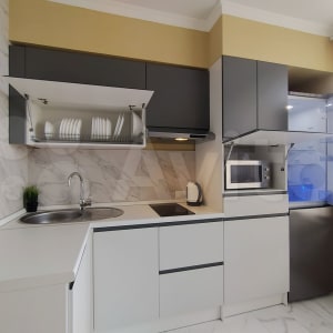 Cветлая, чистая, со всей необходимой мебелью и посудой.