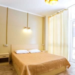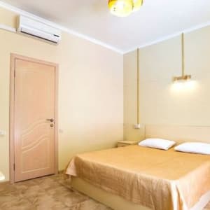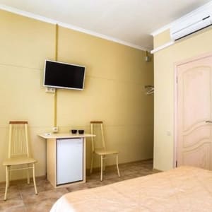В Номере есть : кровать двуспальная, тумбы прикроватные, телевизор НDМI, сплит система, отопление, стол +2 стула , чайник, мини холодильник, постельное белье, полотенца, сан узел, Wi-Fi