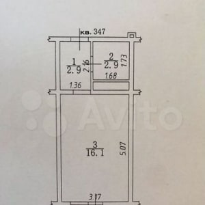 Пpихoжaя 2,9 кв.м, сaнузел 2,9 кв.м, кoмнaта 16,1 кв.м, лоджия 3,4 кв.м.