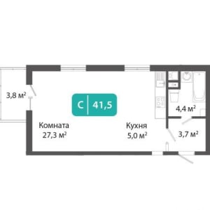 - Общая площадь: 41.5 м²